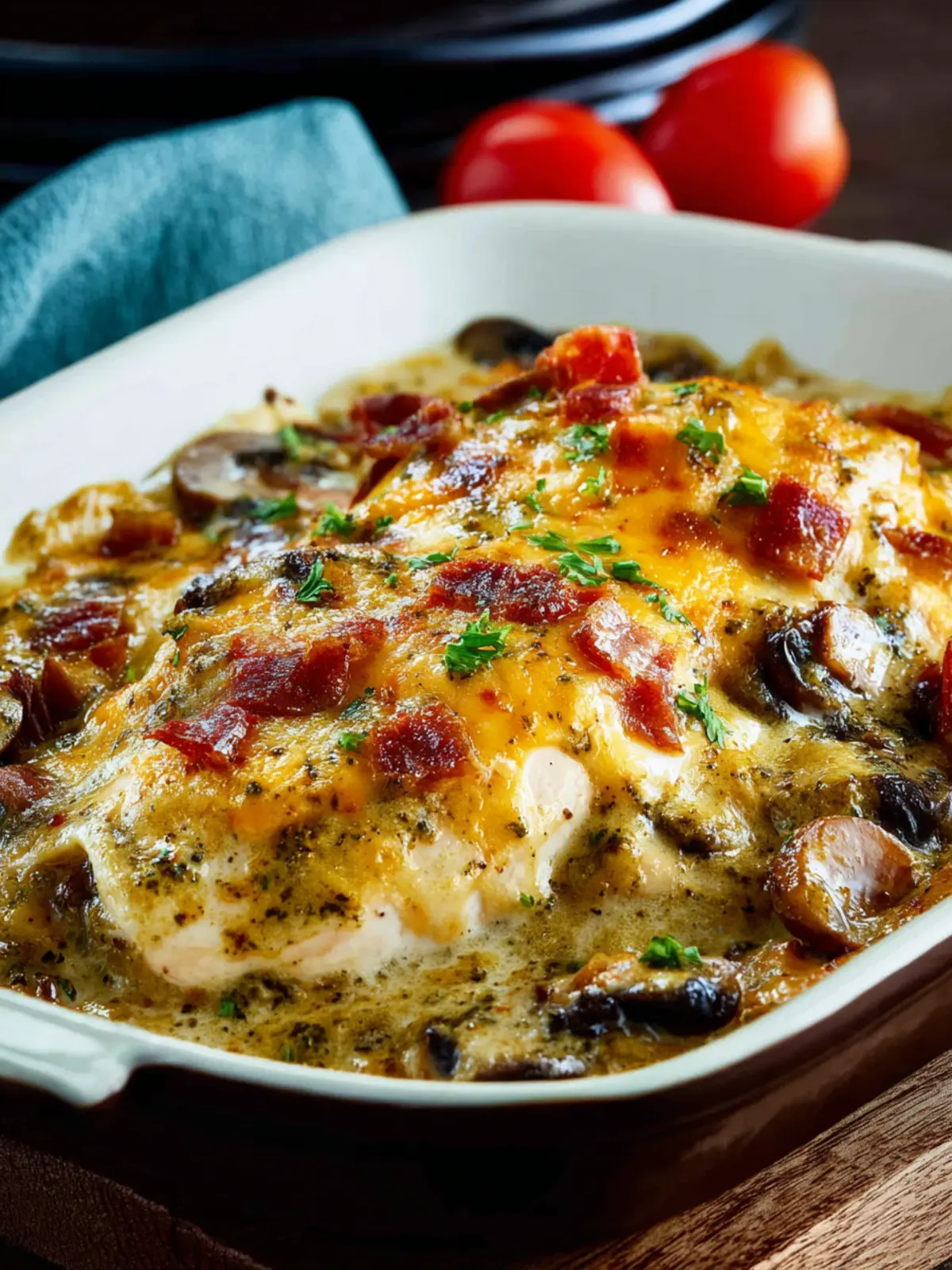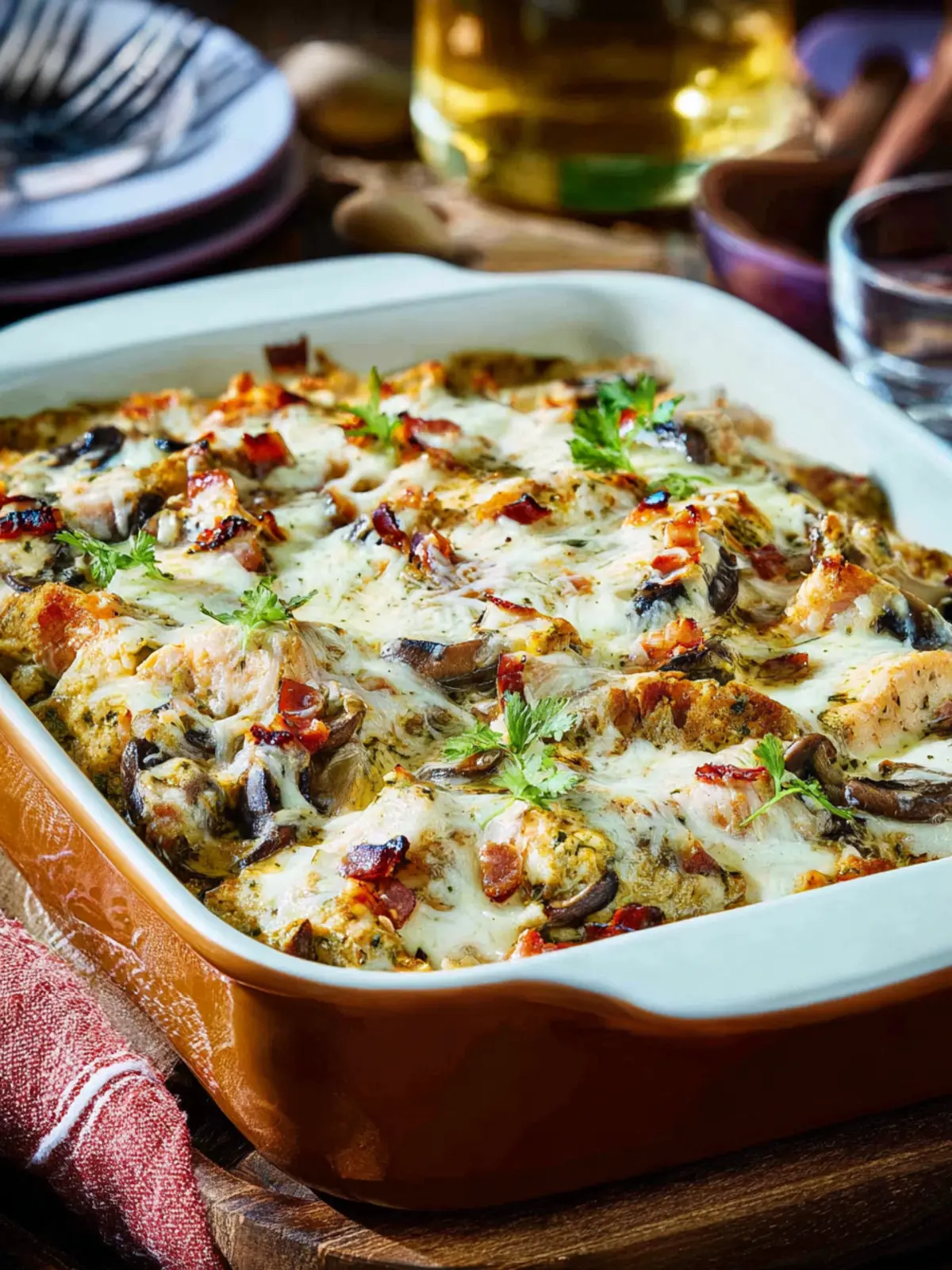 Crispy bacon adds a savory crunch that perfectly balances the creaminess of the cheese and chicken. Use thick-cut bacon for maximum flavor, and be sure to cook it until crispy to maintain its texture in the casserole.