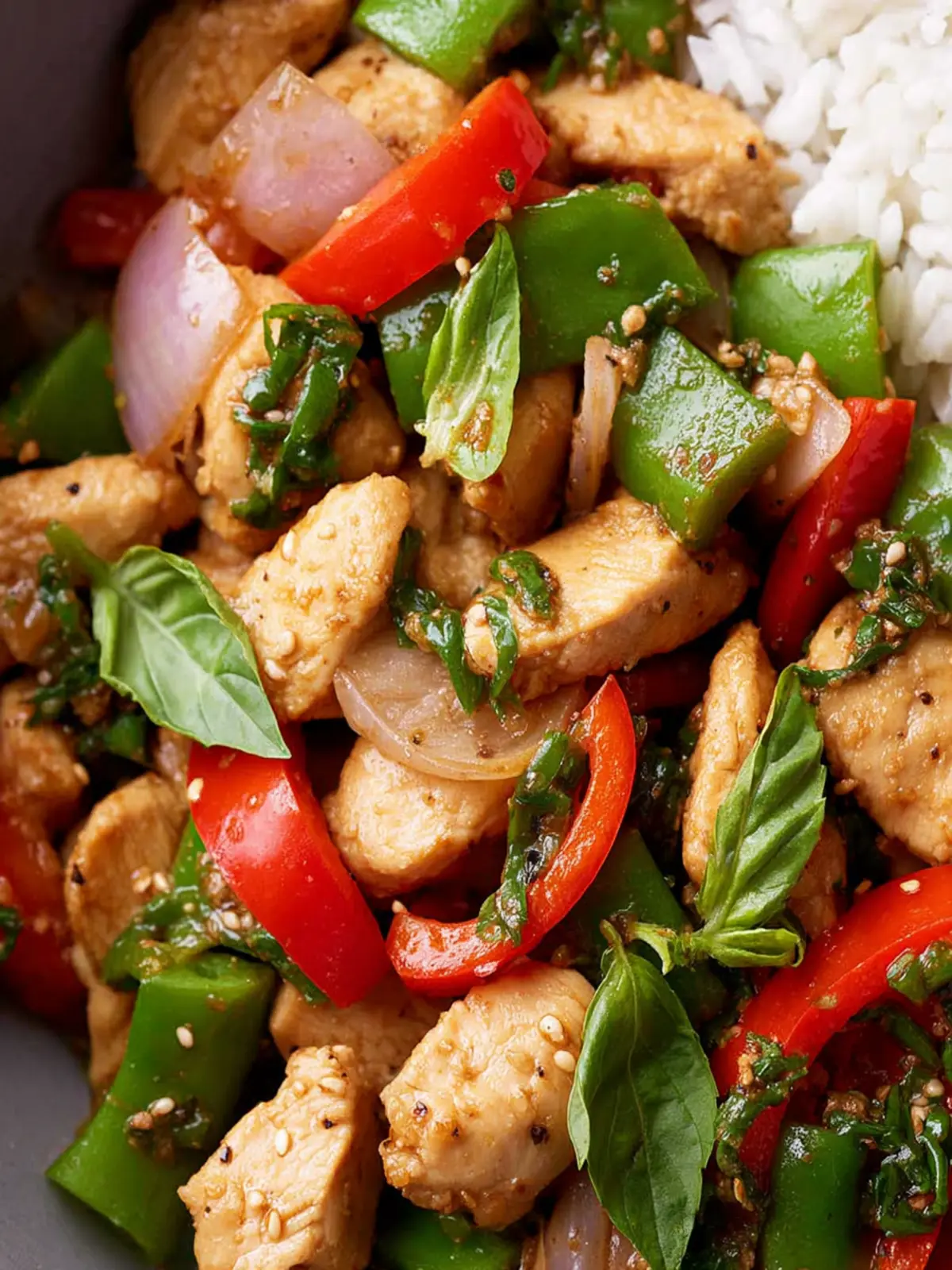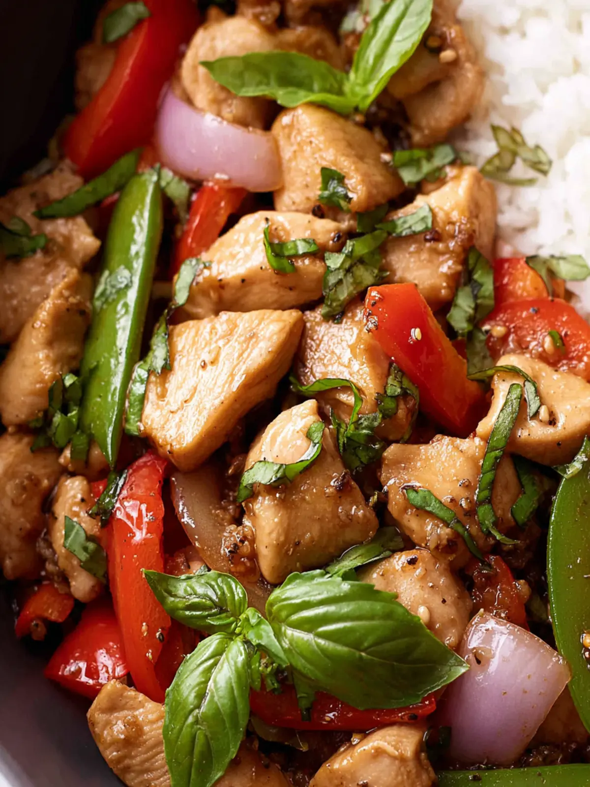 A quick and delicious stir-fry featuring chicken, vegetables, and fresh basil.