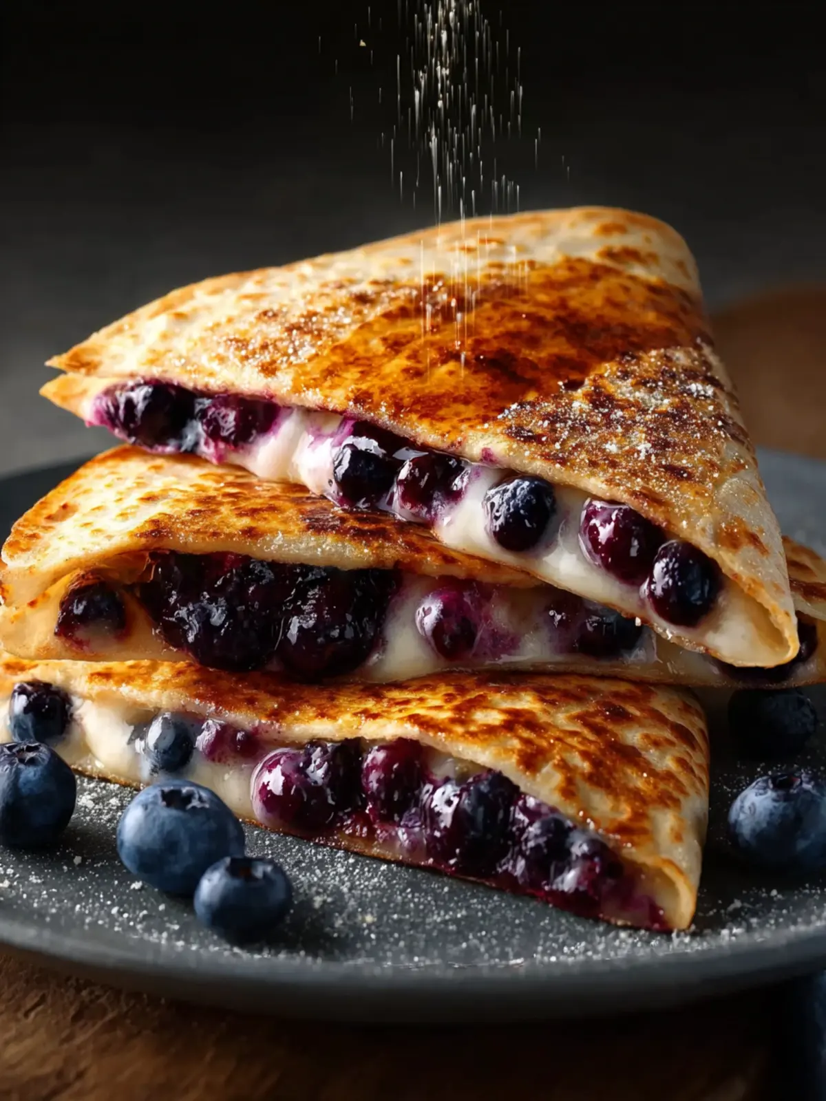 Fresh Blueberries: At the heart of this dish, fresh blueberries add a sweet, tangy burst that brightens each bite. Their vibrant color and juicy texture not only enhance the visual appeal but also provide a delightful contrast to the creamy filling, making this quesadilla a true morning delight.