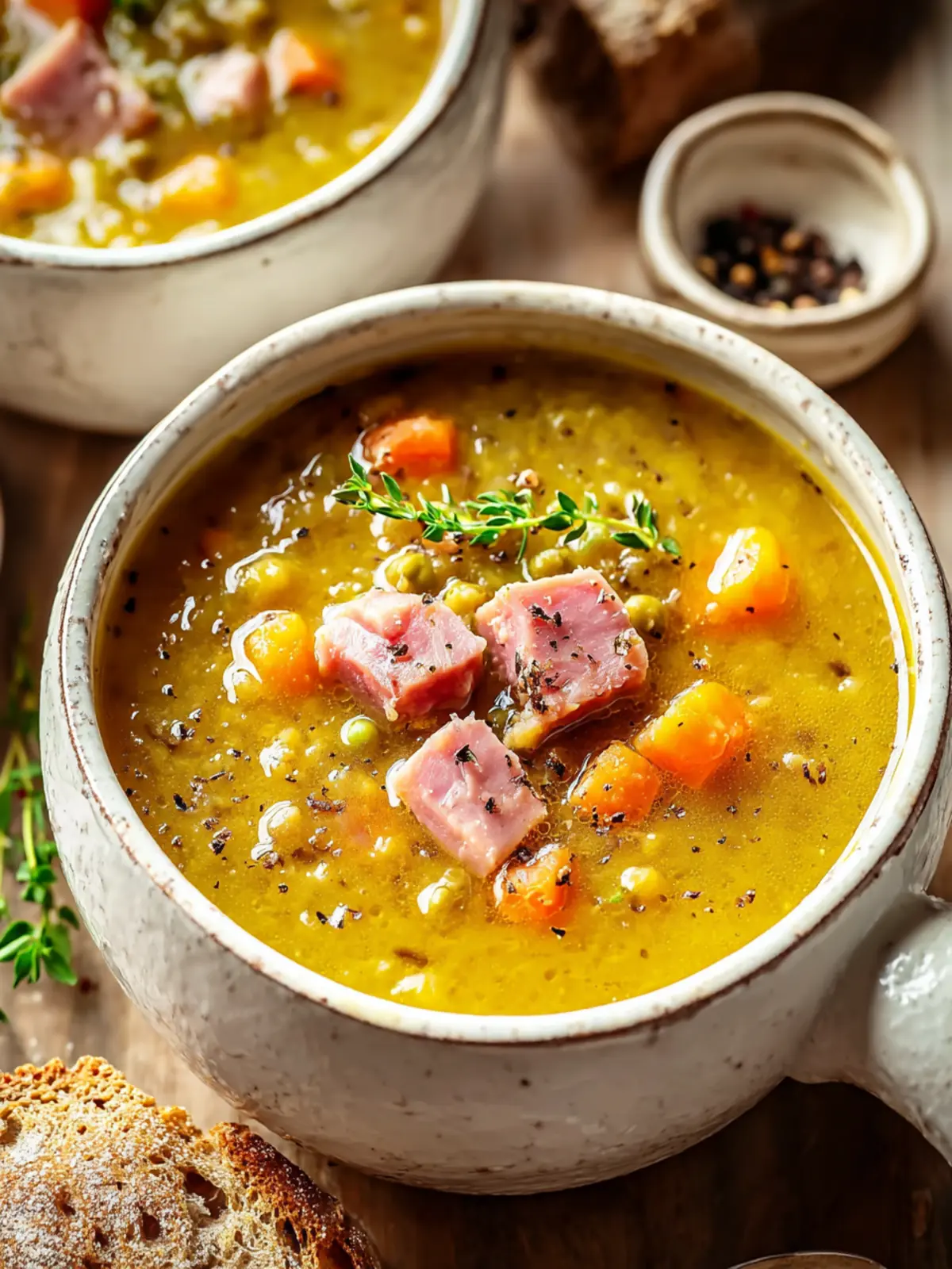 • Ham: Using a leftover ham bone or diced ham adds a depth of flavor that elevates this soup to comfort food status. The smoky notes from the ham complement the heartiness of the peas perfectly.