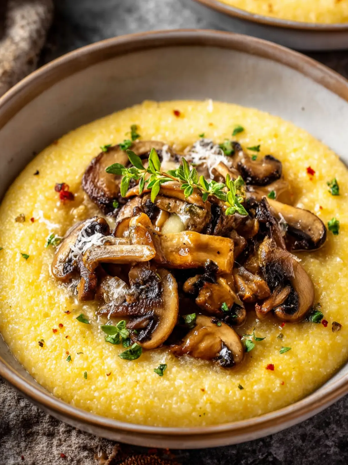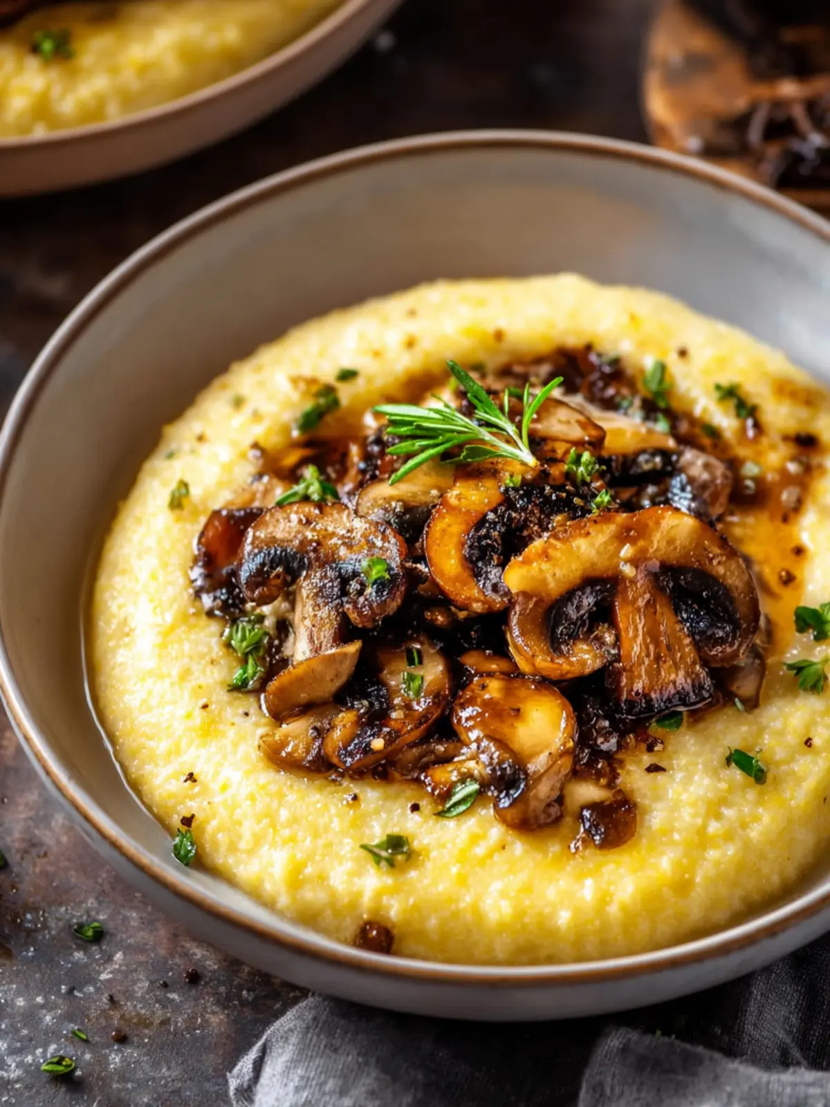 - Spoon the creamy mushroom and garlic polenta onto plates or into bowls.