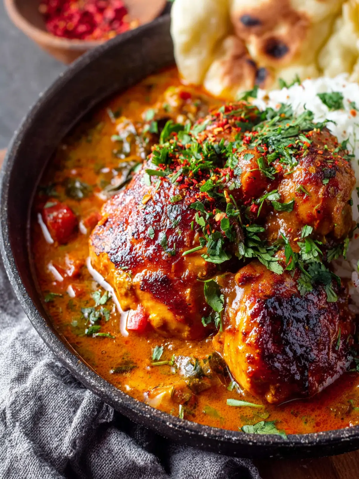 - Serve the chicken and sauce over bowls of rice with fresh naan. Top with extra cilantro.