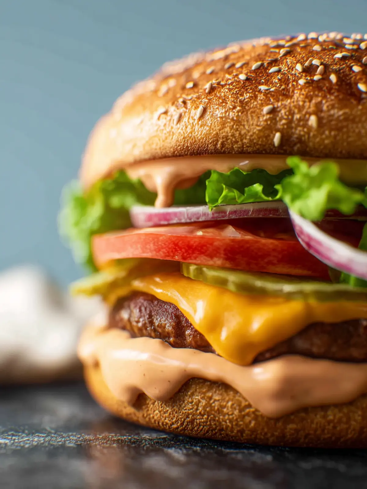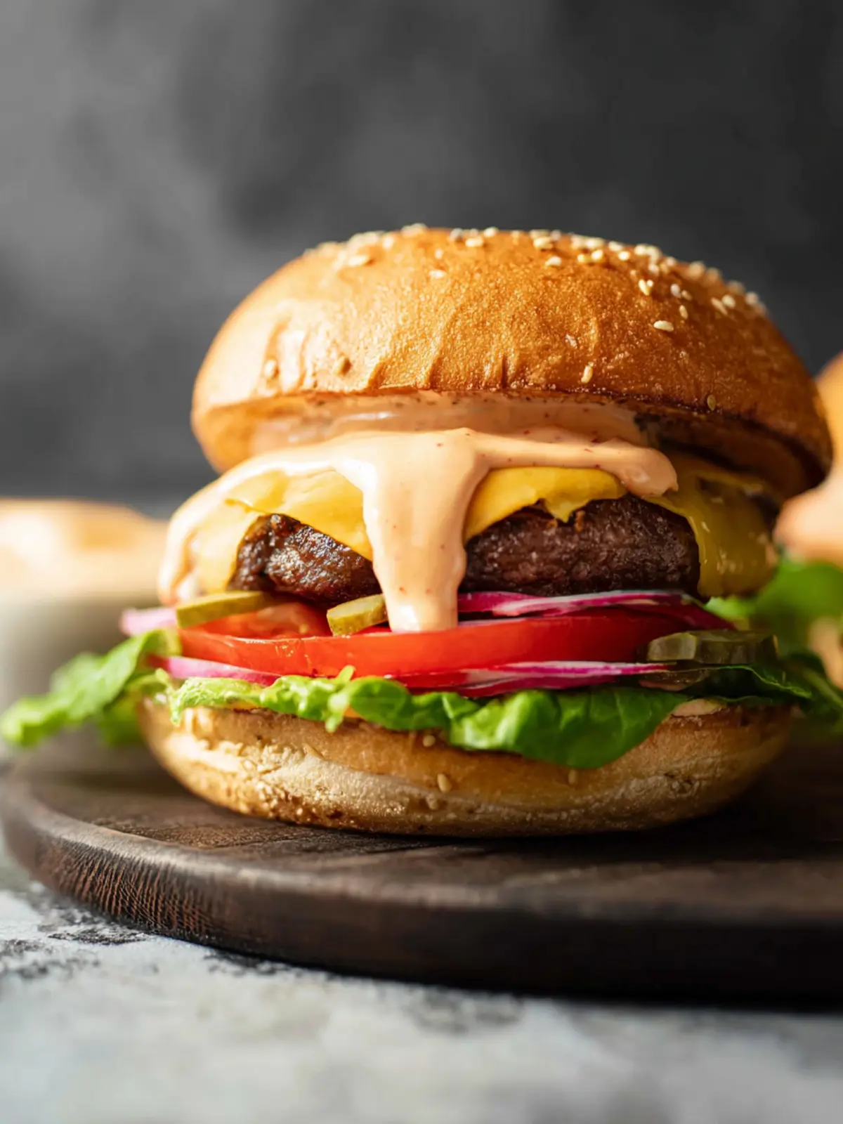 Classic Cheeseburger: Nothing beats the timeless combination of a juicy beef patty, melted cheese, and your homemade easy burger sauce. It’s a classic for a reason!