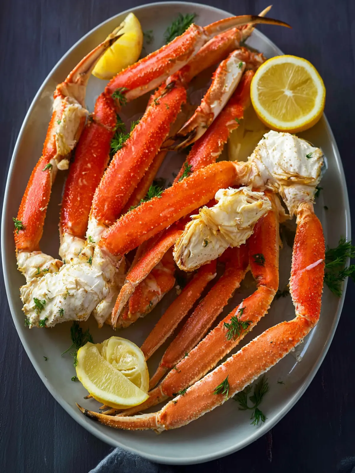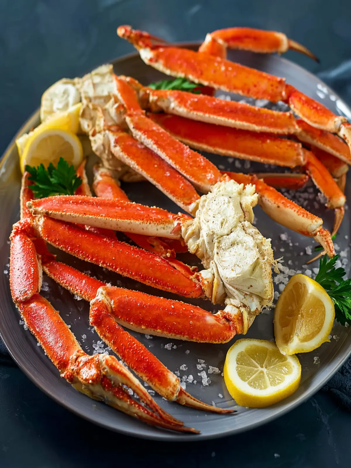 - Serve the crab legs immediately.