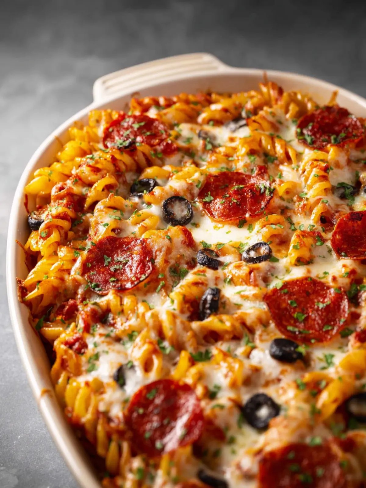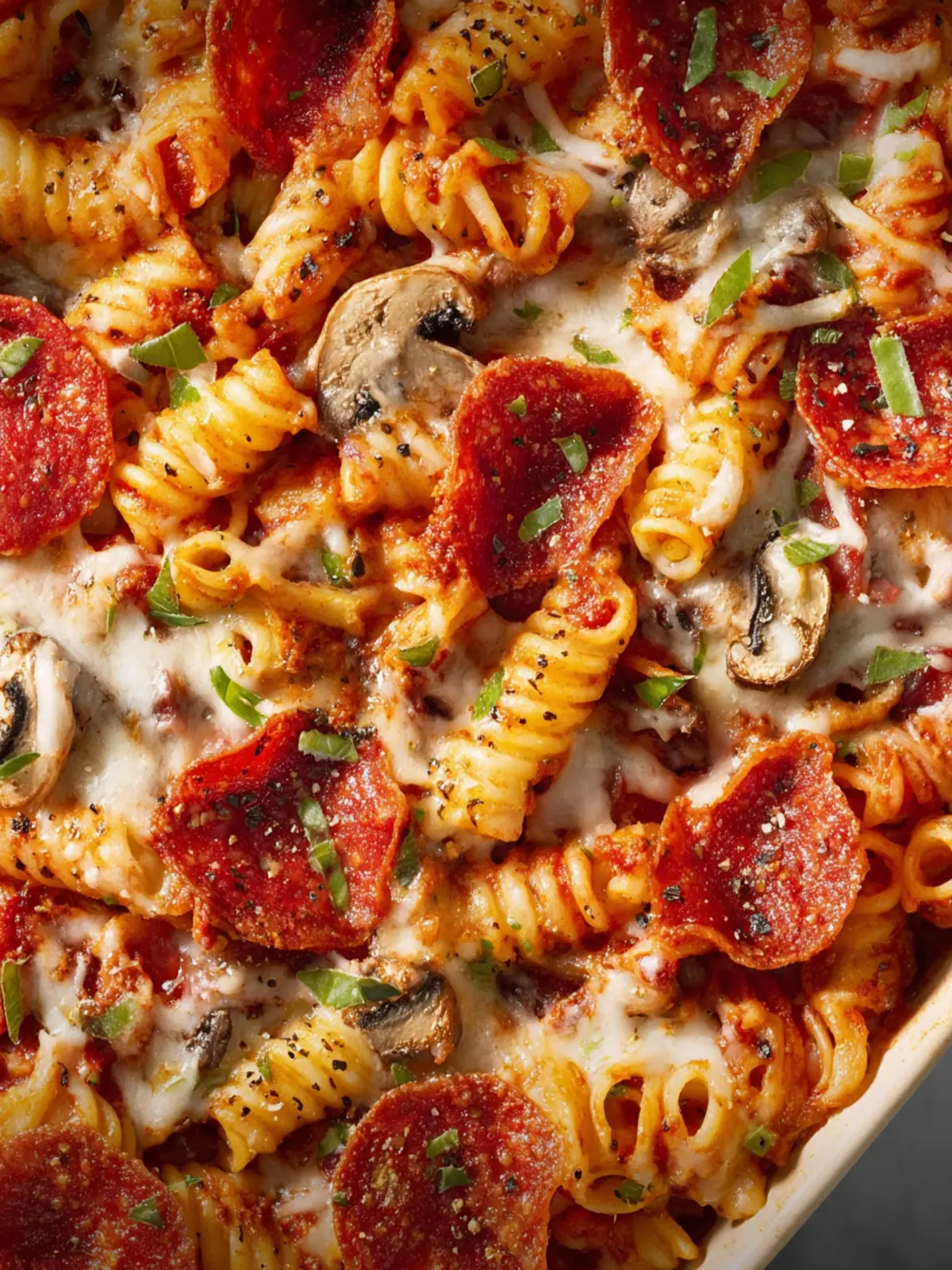 Toppings: Feel free to customize with your favorites—pepperoni, bell peppers, olives, or mushrooms. It’s all about making your easy pizza pasta bake uniquely yours.