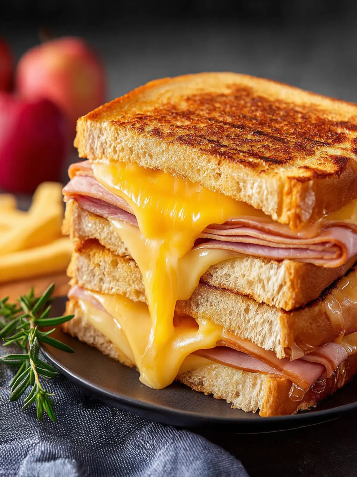 Don’t shy away from adding condiments or extras. A hint of Dijon mustard or slices of apple can add a refreshing twist to your grilled ham and cheese.