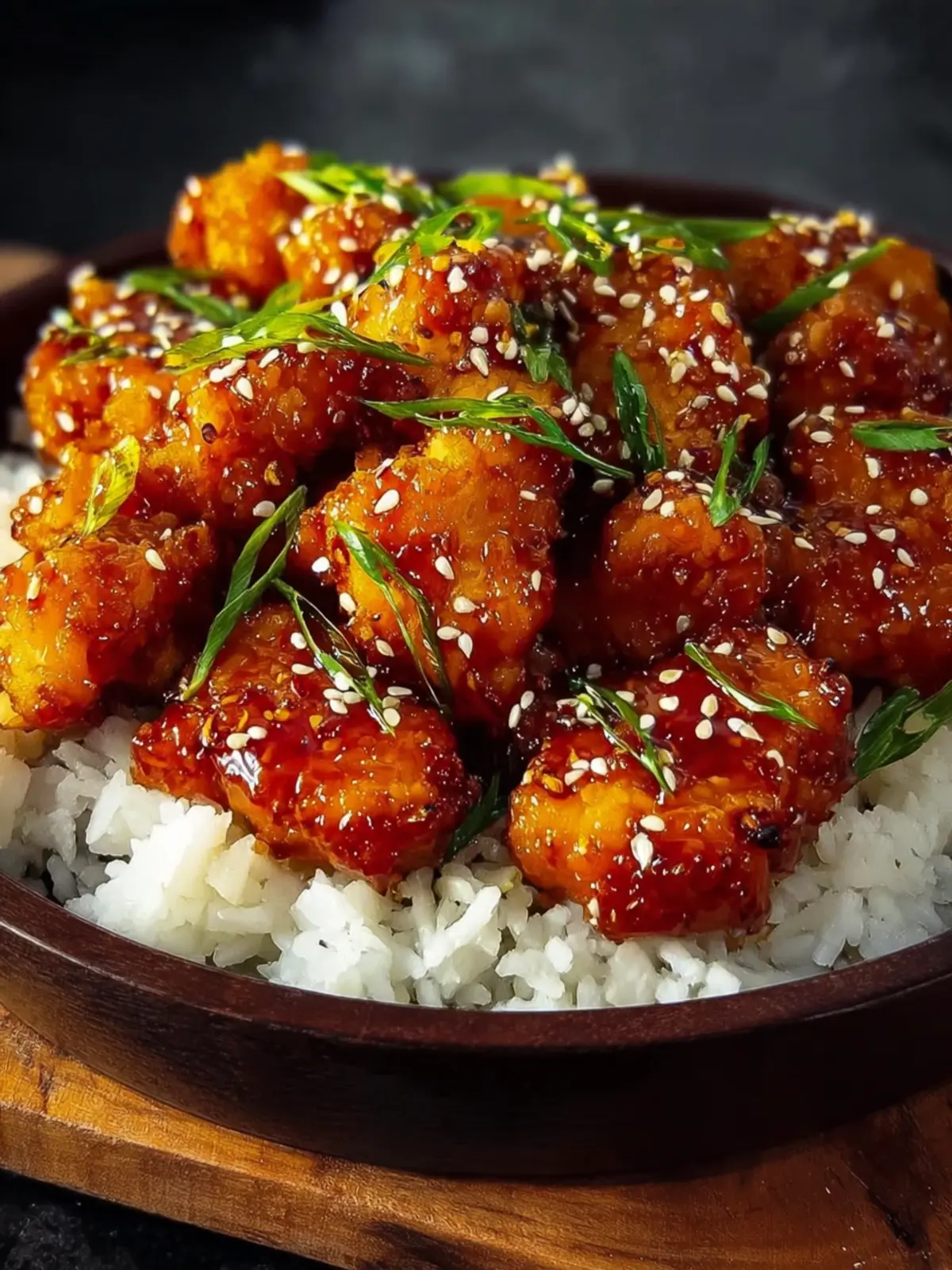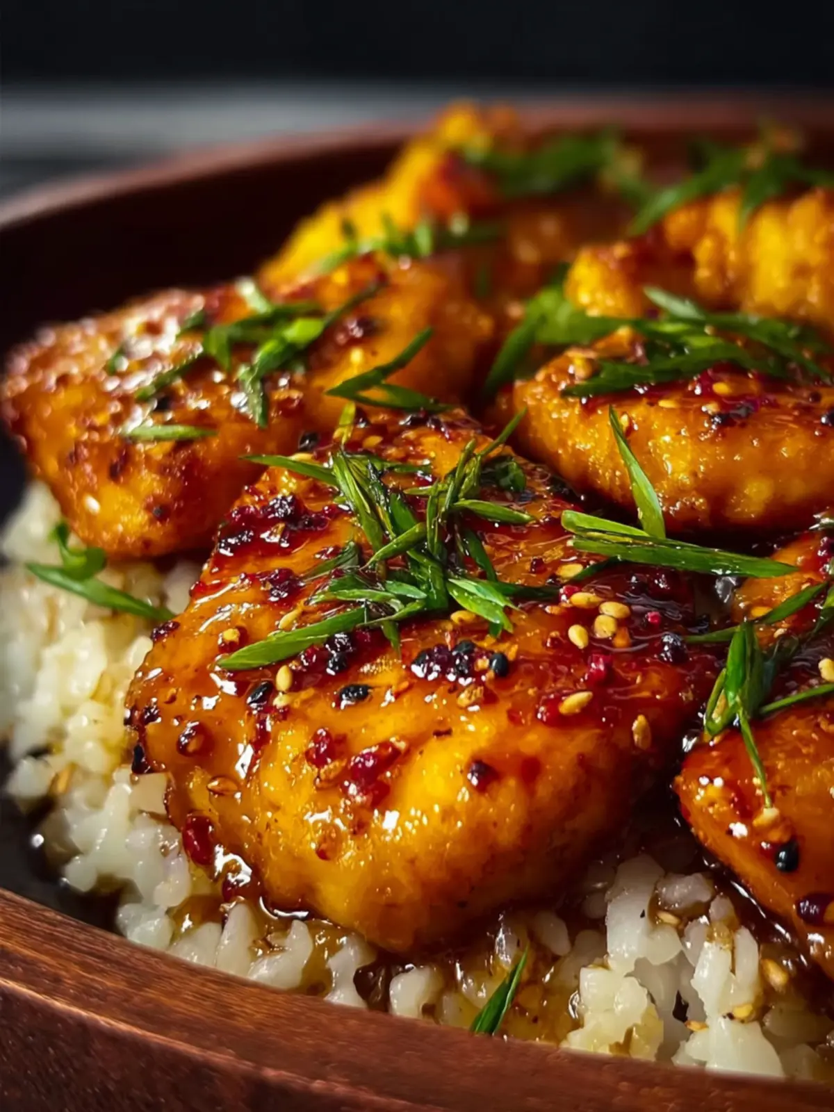 - Garnish and serve – Finish with chopped green onions and sesame seeds. Serve the chicken over warm rice or noodles and drizzle extra sauce over everything.