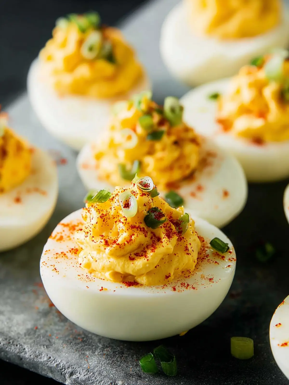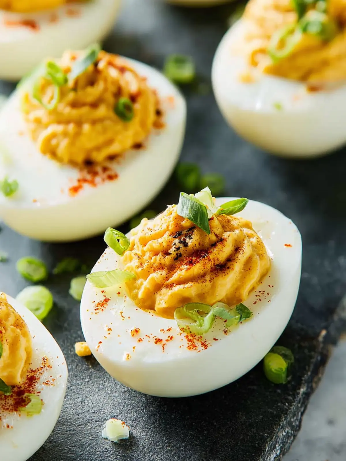 A delicious take on classic deviled eggs, featuring creamy avocado mayonnaise and bold flavors.