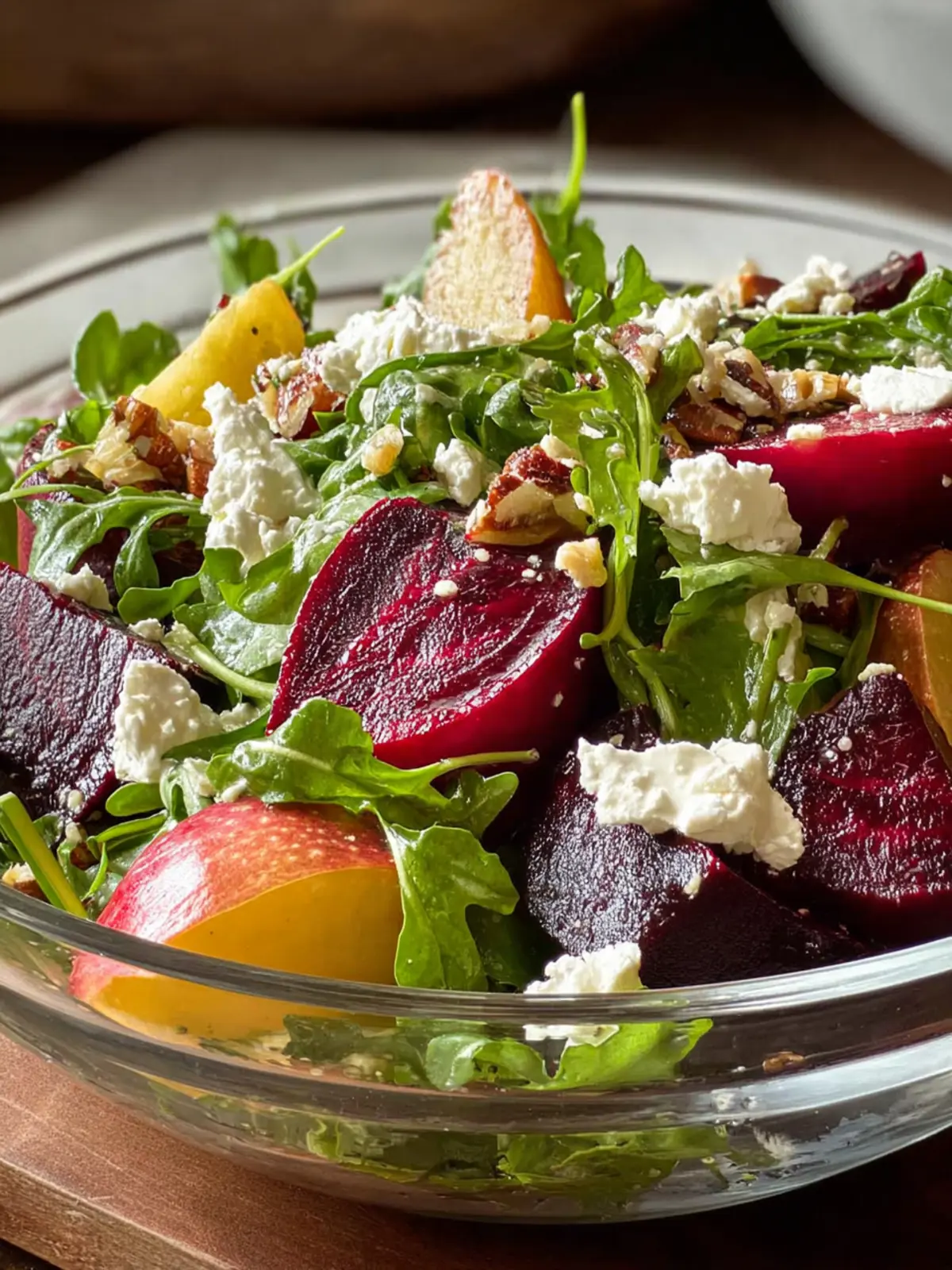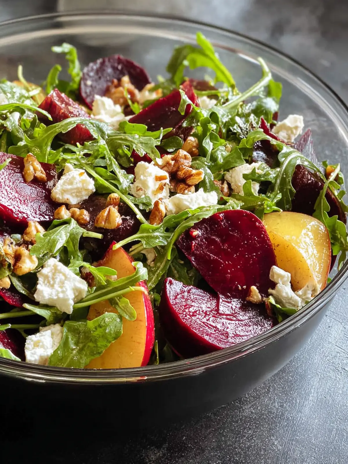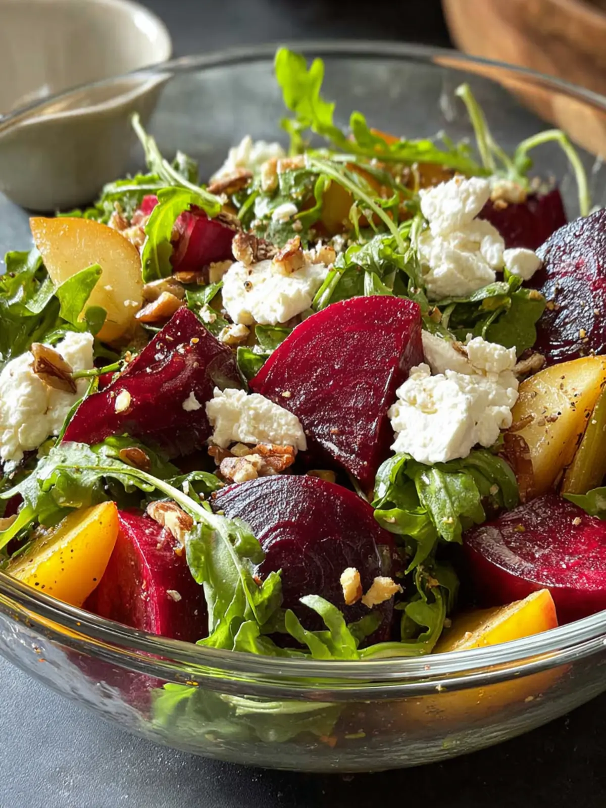 • Visual Appeal: The striking red of the beets alongside the vibrant green of arugula and the white crumbles of goat cheese make this salad as appealing to the eyes as it is to the palate. It truly feels like eating art.