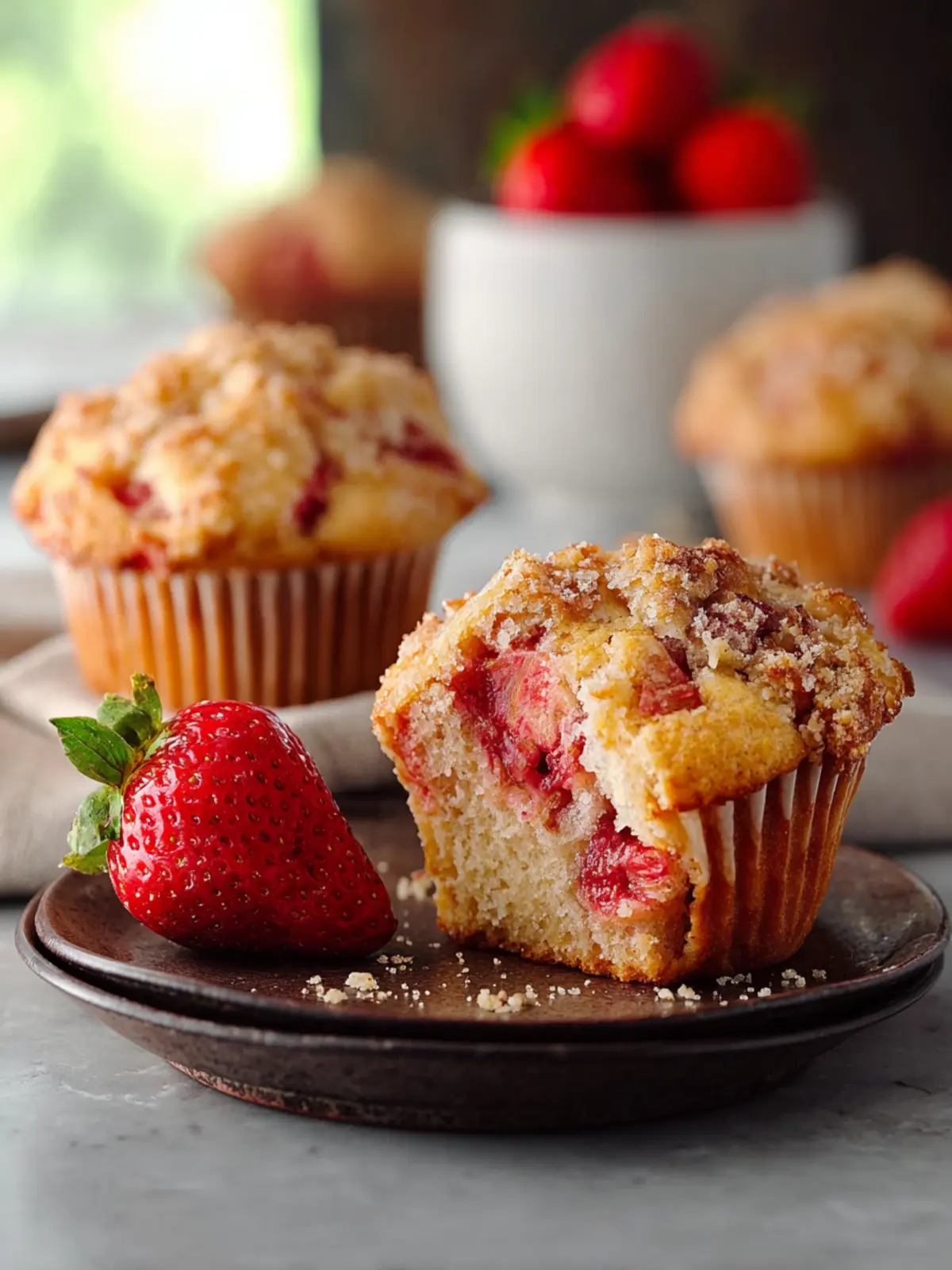 Delicious and moist strawberry muffins that are perfect for breakfast or as a snack.