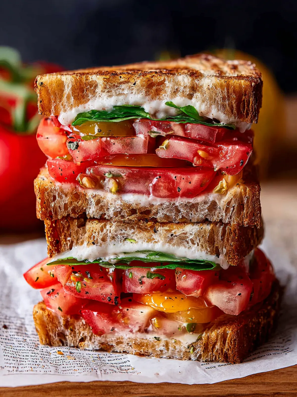 If you love some heat, consider adding sliced jalapeños or a smear of spicy aioli. The kick of spice contrasts wonderfully with the sweetness of ripe tomatoes, enhancing the overall flavor profile. Just imagine the deliciousness of fresh tomatoes with a dash of heat – a true flavor adventure!